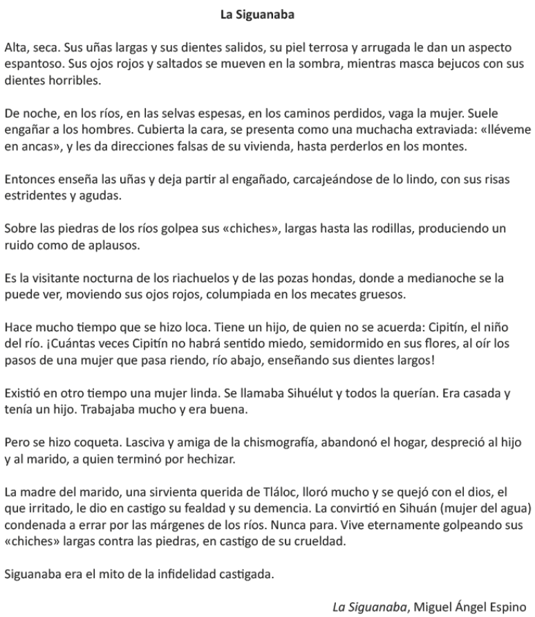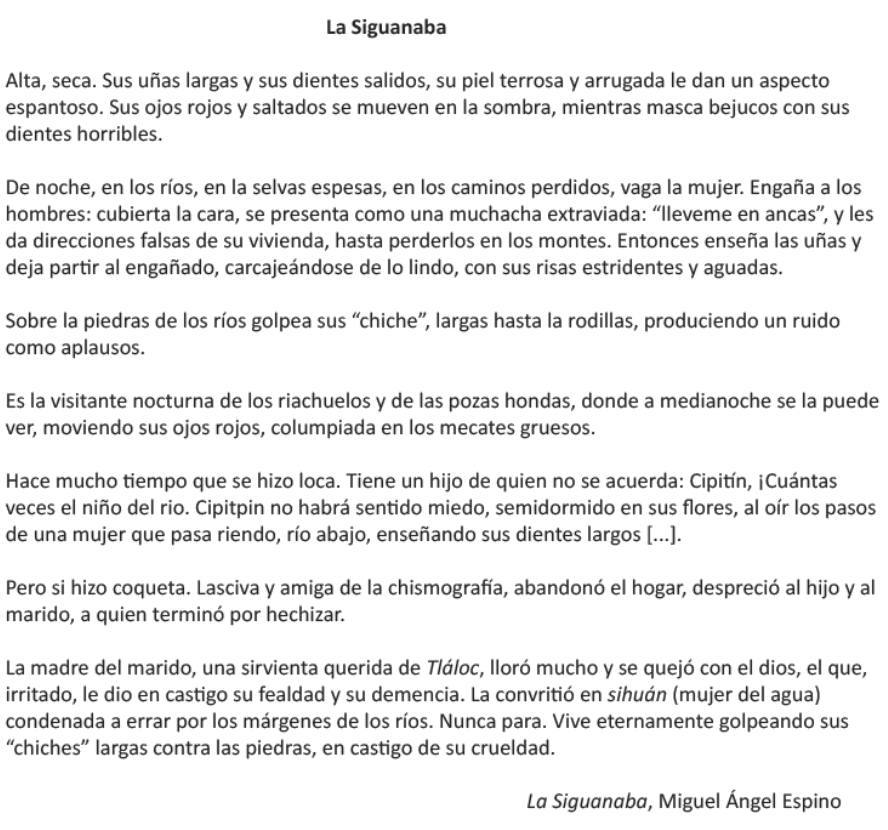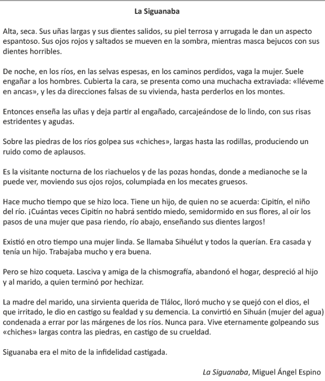 ¿Qué representa el personaje de la Siguanaba en la siguiente leyenda?